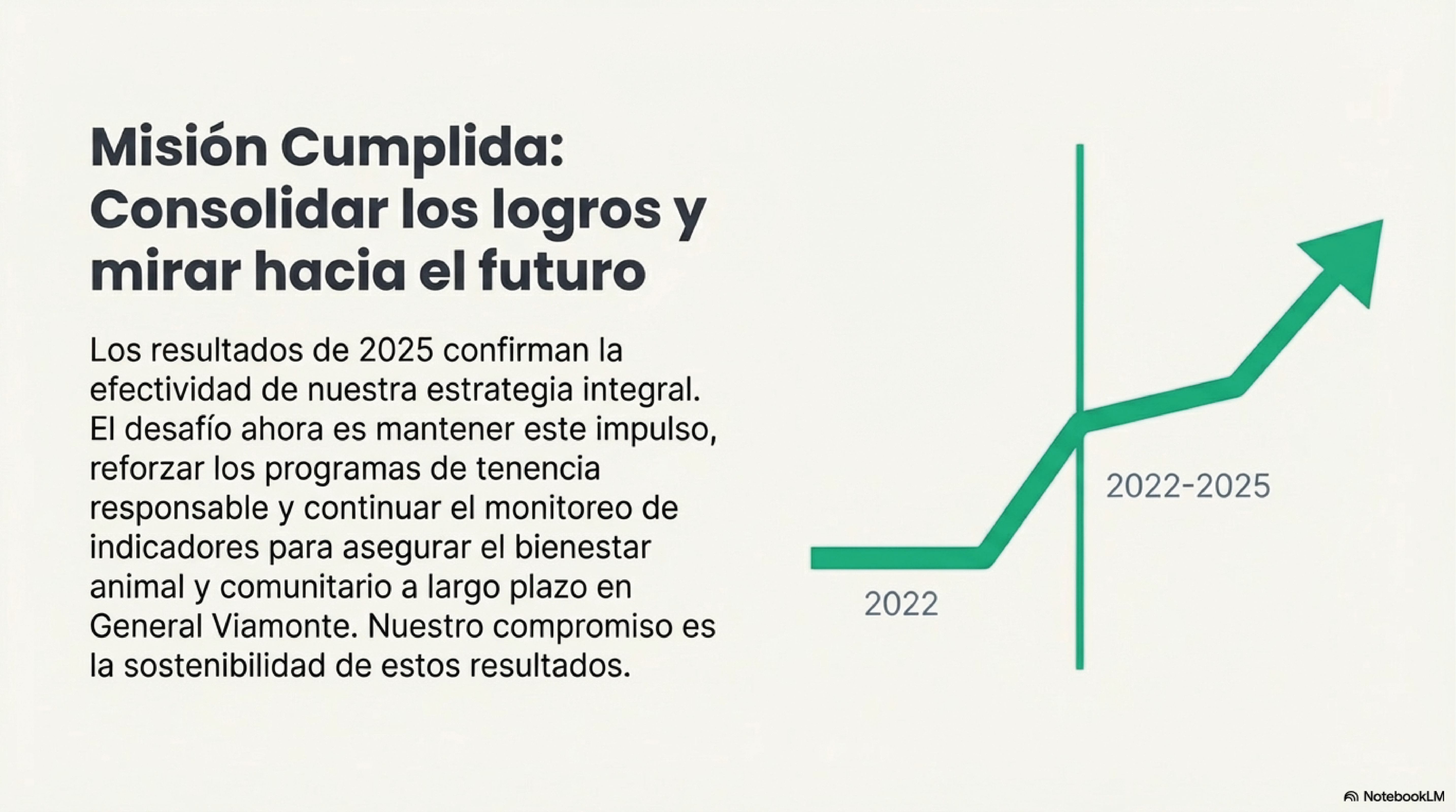 Este documento presenta la experiencia de General Viamonte como un caso exitoso de intervención municipal, sustentado en un diagnóstico preciso, una estrategia estructurada en pilares de acción complementarios y un sistema de monitoreo permanente de resultados. A partir del análisis de indicadores concretos y comparables, se demuestra cómo una gestión sostenida en el tiempo puede revertir tendencias críticas y sentar las bases de una convivencia armónica entre la comunidad y sus animales.